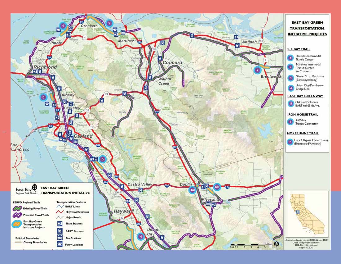 The U.S. Department of Transportation announced $600 million dollars in TIGER II grants today and the only project in Northern California to make the cut was the East Bay Regional Park District’s proposal to fill in seven key gaps on the 200-mile bicycle and pedestrian trail system that runs across Alameda and Contra Costa counties.
