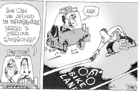 In sum, bicycle facilities are inexpensive to construct because the main building blocks are low cost: roadway stripes, signs, and bike racks. However, it is very time consuming to develop a technically sound project that meets the diverse needs of the public. For road diet projects in particular, the costs associated with feasibility, outreach, and design are more than the cost to actually construct the facility.