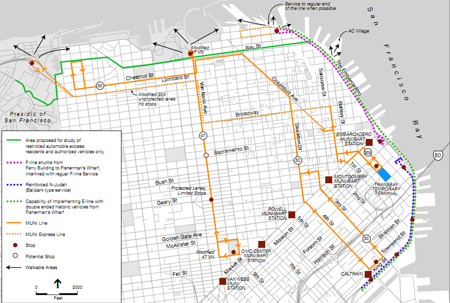 “The [People Plan is] a good start, but I hope by the end of the process we find a way to get some more long-term public transit benefits as a result of this effort,” said Metcalf. “I hope we come up with a way to run real E-line service along the whole Embarcadero, not just temporary service. I also hope we extend the E/F-line to Fort Mason and leave a legacy from this event that will benefit us for generations.”