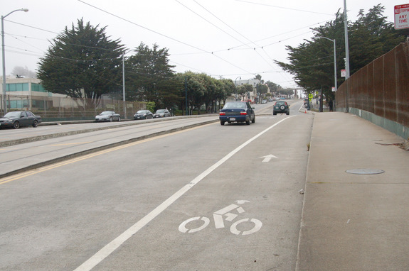 The new walkway helps link cycling commuters to the bike lanes on Ocean Avenue, which have served as a more comfortable connection to City College of San Francisco and the Ingleside district since they went in late last year.