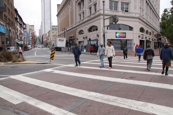 “It’s an excellent first step in improving this dangerous intersection,” said Walk SF Executive Director Elizabeth Stampe. “The new striping makes the crosswalks much more visible.”