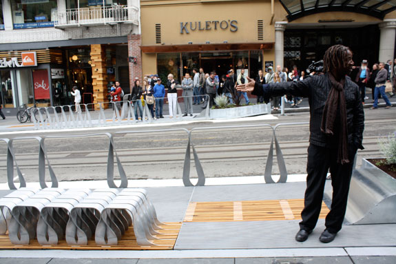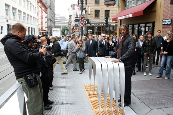 Landscape designer and architect Walter Hood designed the eight six-foot wide parklets, which have been hailed as the marquee project of the city’s Pavement to Parks program.