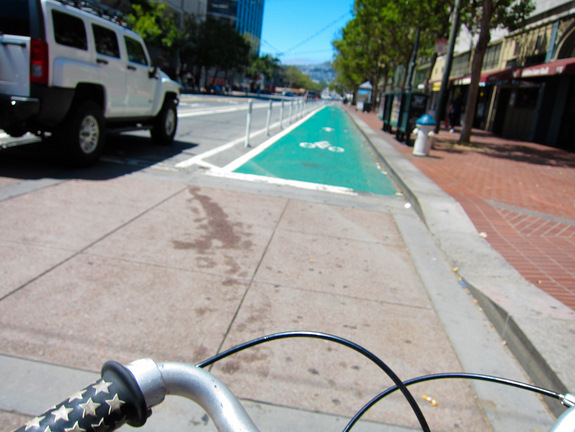 But now, it would seem he has since taken former Streetsblog reporter Matthew Roth’s suggestion and “ridden in that small crevice between the door zone and speeding traffic and wondered why a mode of travel you’ve chosen should feel so fraught with peril.”