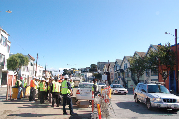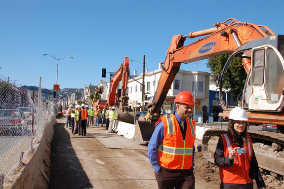 City staff and construction crews showcased the site last Friday as Mayor Ed Lee, who formerly headed the DPW, paid a visit to the project. It’s the largest yet under the city’s Great Streets Program, which has completed six streetscape projects since it began in 2005 and has another nine in the pipeline or under construction, according to a press release from the mayor’s office. Cesar Chavez, budgeted at $35.2 million, is the biggest project funded by the Great Streets Program to date.