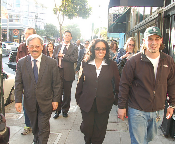 San Francisco Mayor Ed Lee announced the appointment Monday morning before joining Olague on a merchant walk along upper Haight Street, where she told Streetsblog that she would make pedestrian and bicycle improvements in her district a priority, along with extending parking meter hours.