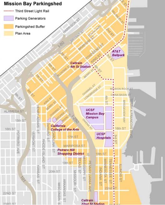 Included in the plan’s Mission Bay “Parkingshed” area are existing and planned developments that are drawing more and more commuters, including the University of California San Francisco, AT&T Park, and Caltrain stations at 22nd and Fourth Streets. It also encompasses impacted “buffer areas” like the Dogpatch and Potrero Hill neighborhoods, and SFPark expansions are also planned in the Mission around a park that’s set to replace a parking lot at 17th and Folsom Streets.