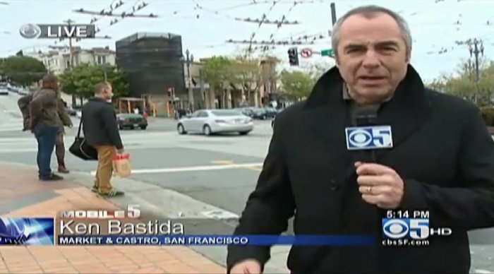 Standing on the corner of Castro and Market yesterday afternoon, CBS 5 reporter Ken Bastida relayed to the camera a sad tale of the dangers of walking in San Francisco.