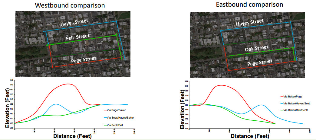 Leah Shahum, executive director of the SF Bicycle Coalition, said the organization is “encouraged to see the city officially proposing wider, physically separated bikeways on Fell and Oak Streets” and “grateful to see that the design includes many new corner, sidewalk bulbouts that will make it easier and safer for people to walk across these intimidating streets.”
