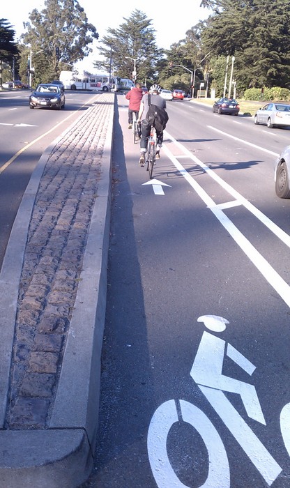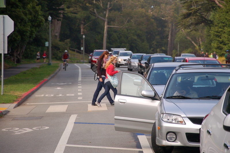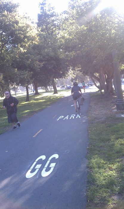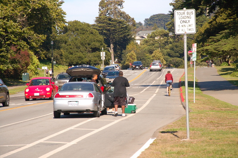Green pavement markings may still be added to parts of the JFK bike lanes, though if and when are still unclear. Although the idea was initially dropped due to complaints that the color would detract from the appearance of the street, Recreation and Parks Manager Phil Ginsburg has since become a proponent of it as a way to clarify the bicycling right of way to visitors, if it’s still necessary. These days, instances of the lanes being blocked by oblivious drivers and pedestrians seem few and far between.