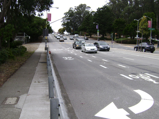 On Portola Drive and Laguna Honda Boulevard, which connects to neighborhoods north, the physical separation provided along much of the bike lanes was intended to make the streets more comfortable for less-intrepid bicyclists to use. That follows the intent of the city’s official goal to reach 20 percent bicycle mode share by 2020. But those streets are also pocked with areas where riders must suddenly merge into dashed lanes, or share lanes with high-speed car traffic, which detracts from the feeling of protection afforded by the separated lanes. Those areas are huge missed opportunities to provide high-quality, broadly accessible bicycling connections for the neighborhoods south and west of Twin Peaks.