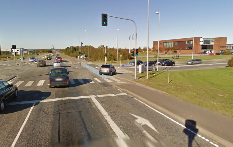 There are examples of similar streets with protected bike lanes that don’t force bicycle riders to merge with auto traffic. When I studied for a semester in Aarhus, Denmark, a city where 20 percent of trips are made by bike, I bike commuted on a major road called Randersvej. Randersvej carries fairly heavy motor traffic and has a speed limit nearly the same as Portola’s, which is 35 MPH. The raised bike lanes on that road continue straight up to the crosswalk, with painted markings that warn turning drivers to watch for bicyclists and help guide bicyclists through the intersection. Some intersections have bicycle signal phases, and some don’t, but right turn collisions are not known to be a regular problem on the road (I wasn’t able to come by any crash data).