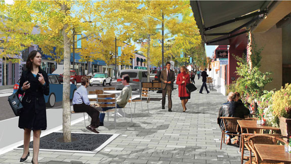 Under the streetscape plan, angled parking will be replaced with parallel parking and about 10-percent of parking spaces will be removed to make room for pedestrian amenities. Gomery said the city plans to purchase smart parking meters, and set demand-based rates that will discourage long-term parking, and more turn around.