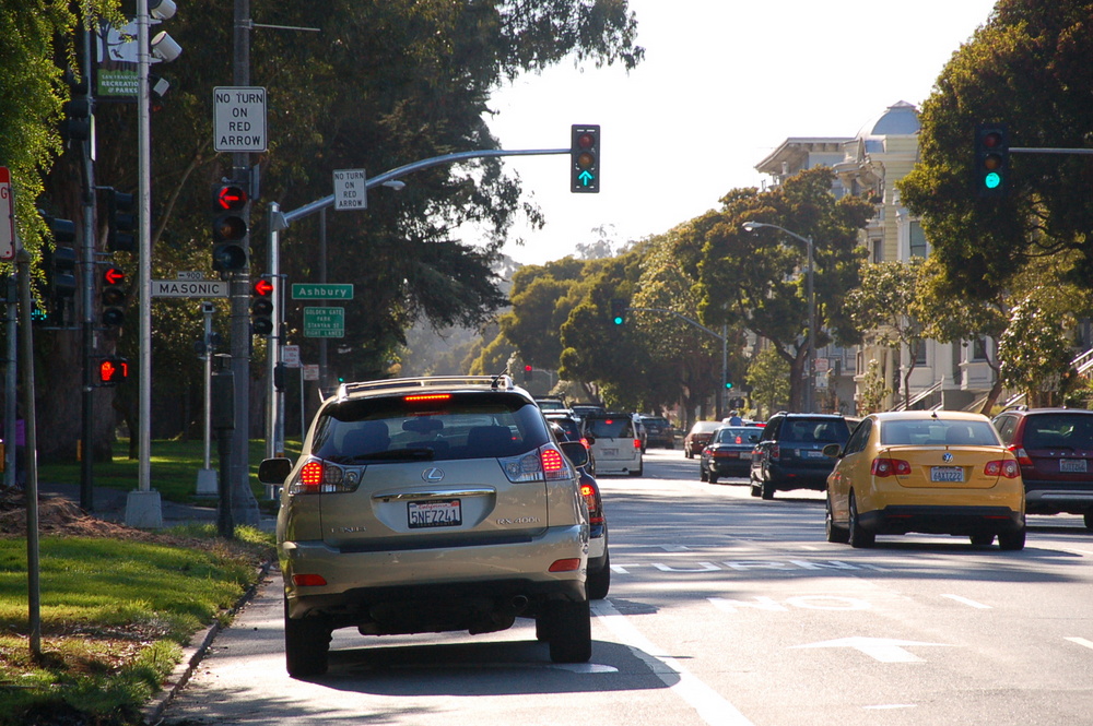 The SFMTA installed the left-turn signal along with a bicycle traffic signal in late 2008 to protect pedestrians and bicyclists crossing Masonic along the Panhandle’s heavily-used path. Previously, left-turning drivers were expected to yield to people crossing the street, but it has remained one of the city’s hot spots for injuries to vulnerable street users. Drivers violated the signal routinely, and crashes remained high, even after the SFMTA installed a shield on the bicycle signal to block it from the view of drivers who might mistake it for a turn signal.