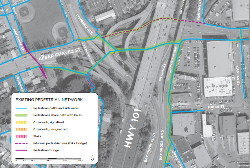 While we don’t know why Huarcha-Salanic was crossing the road in the area, the Hairball is widely considered one of the city’s most dangerous and difficult areas for pedestrians to traverse. Crossing it from Bayshore requires pedestrians to make an extensive detour, and the crosswalks that do exist provide far from any guarantee of safety. The distance between the two nearest crosswalks on Bayshore, located at Cesar Chavez and Oakdale Avenue, is roughly half a mile, judging by Google Maps.
