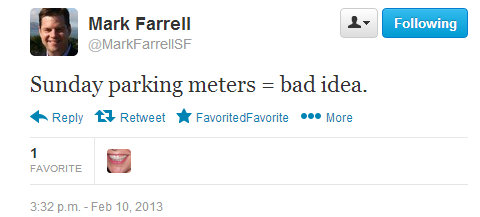 Somewhat inexplicably, D2 Supervisor Mark Farrell has suddenly come out as “strongly opposed” to the expansion of parking meters. At a Board of Supervisors meeting Tuesday, he called for a hearing to scrutinize the SF Municipal Transportation Agency’s parking meter expansion plans, apparently concerned about new meters that will create parking turnover in his district, even though, as Bay City News confirmed, the agency says it has no such plans.