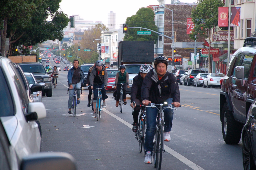Projects like one of the city’s first road diets on Valencia Street — a 1999 trial project that added bike lanes, leading to a 144 percent increase in bicycling on the street [PDF] in the first year — or the removal of one parking space along the Wiggle, were a “really big deal,” he said. “It happened, but now I see proposals to remove 30 or 40 parking spaces, and things actually happen.”