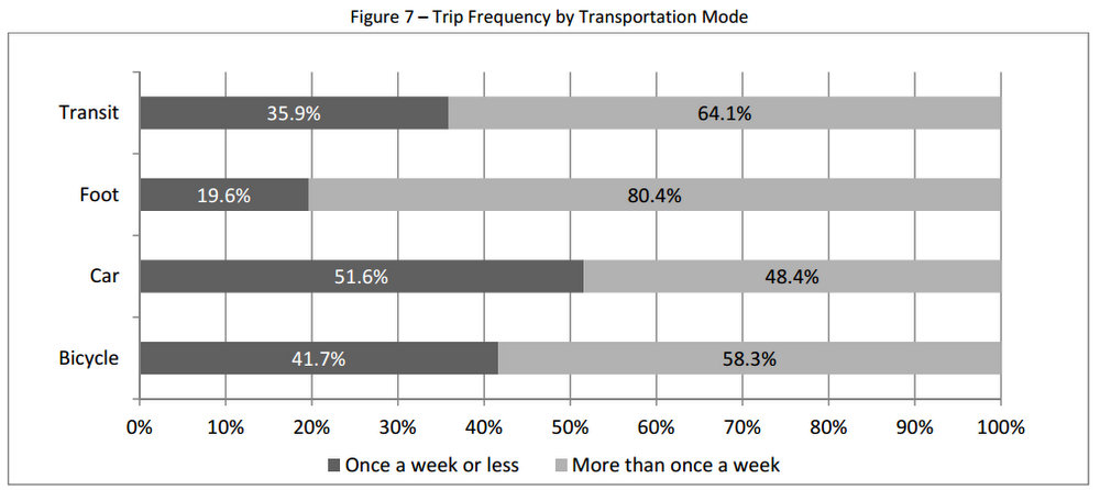 If San Franciscans were to believe the hyperbole and fearmongering spread by merchants leading the “Save Polk Street Coalition,” removing even a small proportion of car parking along the corridor to make the street safer and more inviting will kill businesses. But new survey data from the SF Municipal Transportation Agency shows that only about 15 percent of people get to Polk Street using an automobile, while the rest either come by foot, bike, or transit. Drivers also reported spending the least amount of money per week compared to those who came by other modes.