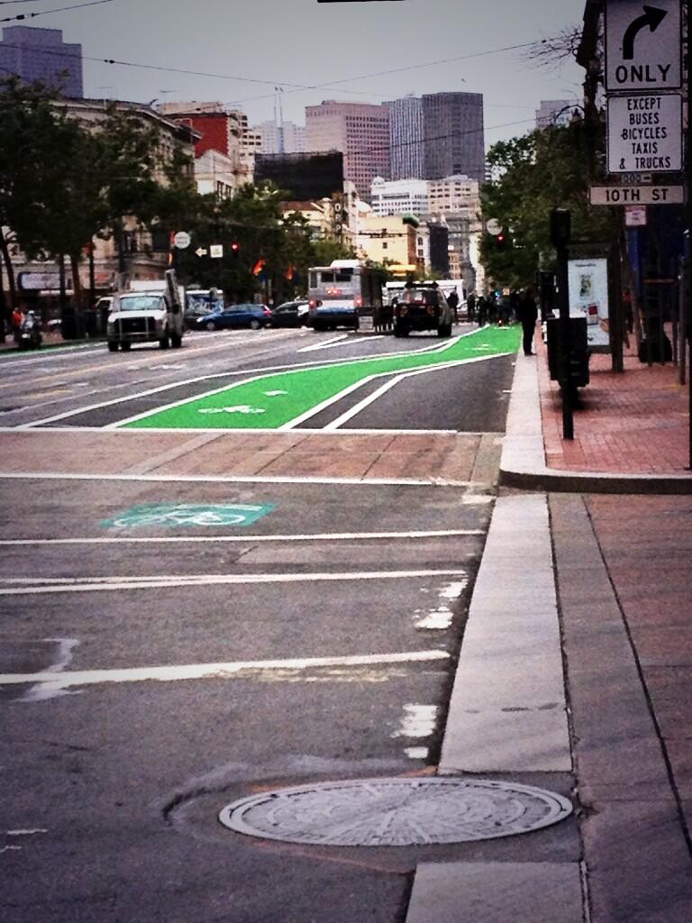 “With Bay Area Bike Share set to launch this August, the SFMTA saw an opening to initiate striping changes that would better utilize space on this segment of Market St., and provided room for an upcoming bike sharing station on the south side of Market St, just east of 10th St.,” SFMTA spokesperson Paul Rose wrote in an email.