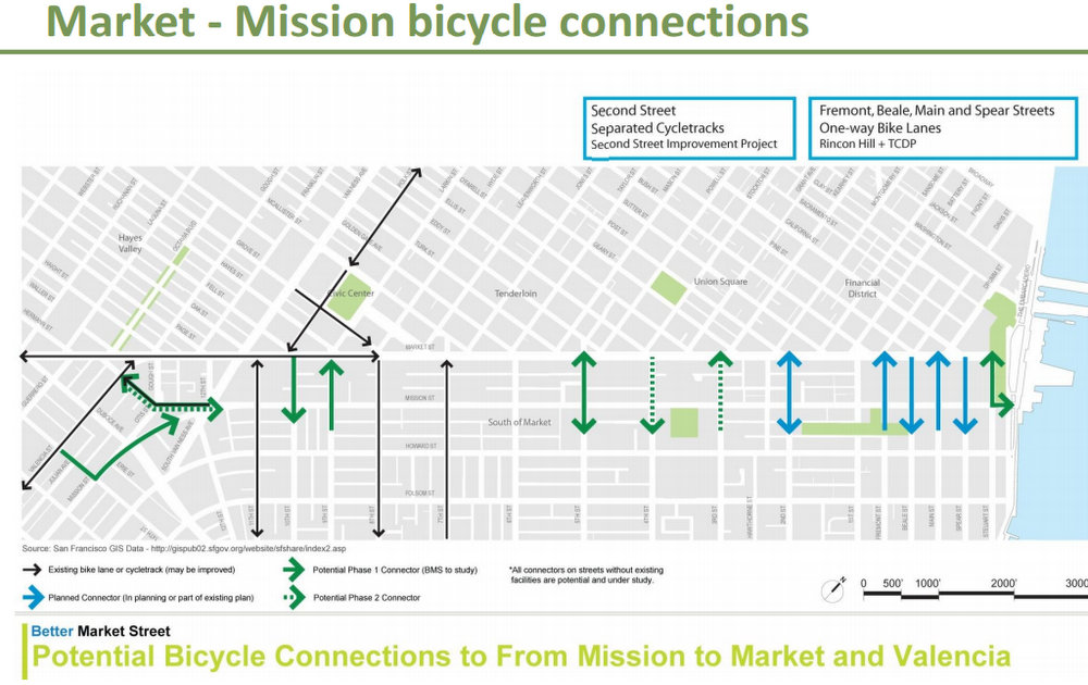 “If the bike riders are voting with their wheels, so to speak, by riding down Market Street, then it would be foolish” to pursue the Mission option, said Nik Kaestner, director of sustainability for the SF Unified School District and a board member of the SF Bicycle Coalition.
