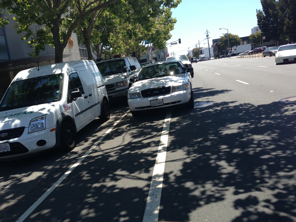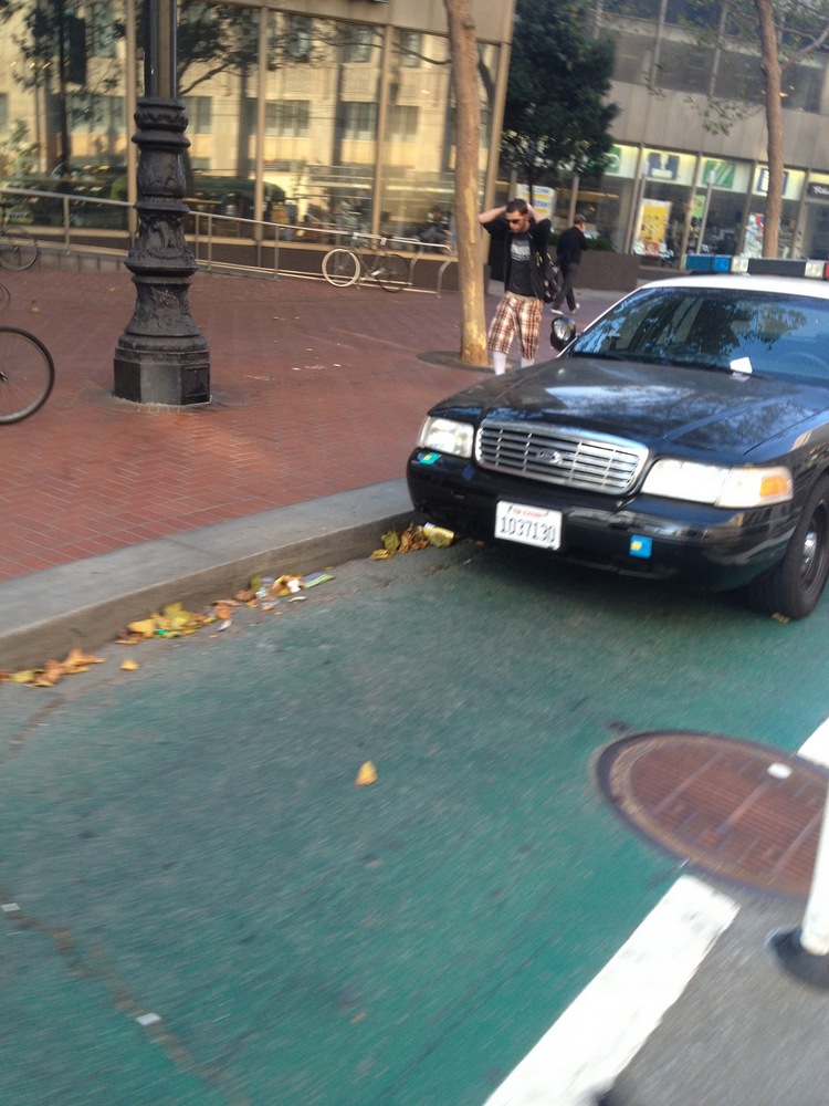 The Market Street bikeway continues to be a favorite parking spot for police. Ian Leighton caught this SFPD vehicle parked in the same spot where we spied another police cruiser last September: