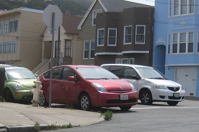 To cap it off, Corrigan shows us the handiwork of the most obnoxious parker in his neighborhood. With access to a city vehicle, this person can apparently park anywhere with impunity. Here, we see the car parking in what Corrigan says is its typical location: blocking a fire hydrant and encroaching on a crosswalk at 10th Avenue and Kirkham Street.