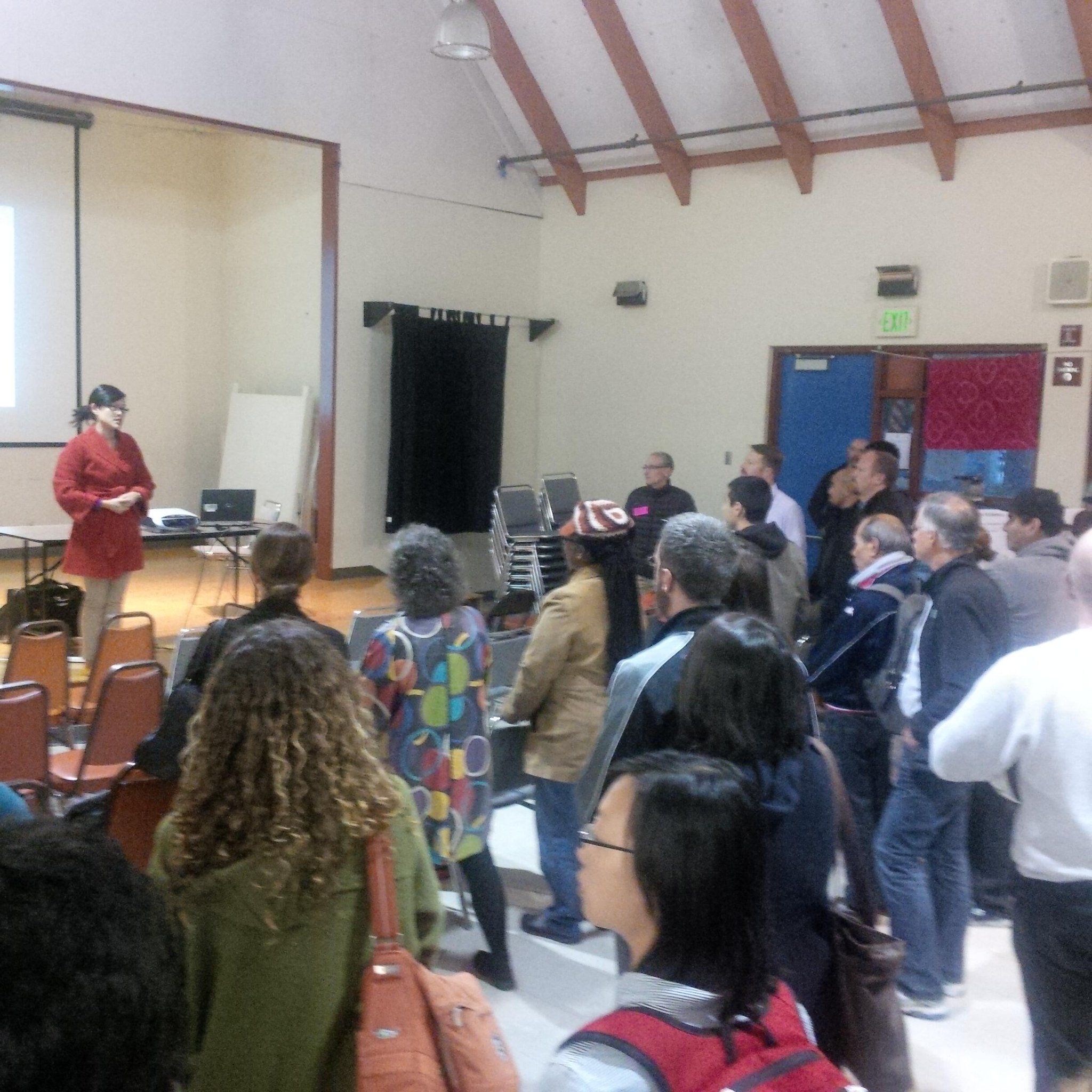 Angelica Cabande, executive director of the South of Market Community Action Network, helped bring its members out to the meeting. The organization hasn't taken a stance on the project yet, but she said the neighborhood has a dire need to make streets safer for families and elderly residents to walk on.