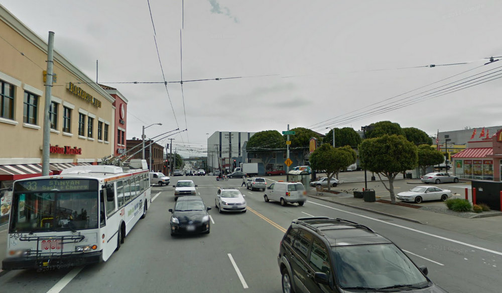 Sixteenth and Potrero both have four traffic lanes and few measures in place to tame driving speeds. Although a plan to redesign a section of Potrero is in the works, it would only encompass the stretch south of 17th Street. On 16th Street, the Muni Transit Effectiveness Project calls for two traffic lanes to be converted to center-running bus lanes — which could have the added benefit of calming motor traffic — but that project is several years away from implementation.