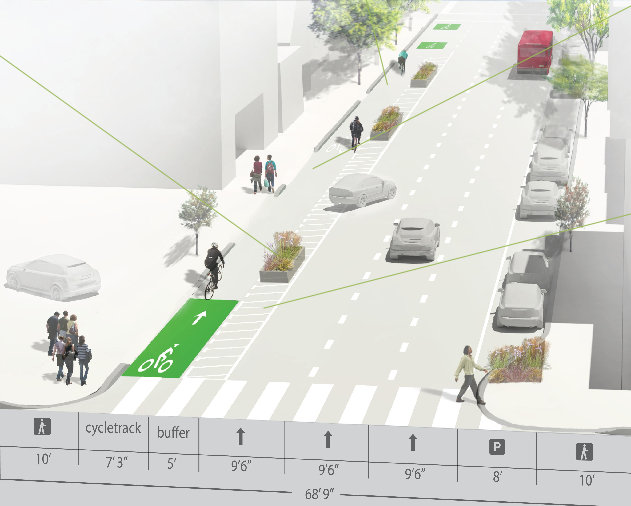“The SFMTA is collaborating with other city departments on improved designs for landscaped traffic islands to enhance physical separation from vehicle traffic, deter motorists from encroaching on the bike lanes and visually narrow the street,” Jose wrote in an email. “These traffic islands will be installed in coordination with other hardscape improvements, such as bulb-outs, curb ramps and bikeway paving improvements, next year.”