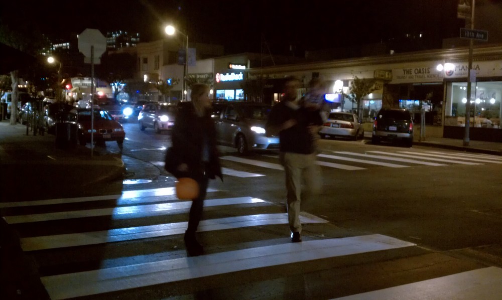 The SFMTA adds the treatment whenever there’s an opportunity like a street re-paving, Jose said. Those are occurring more rapidly with the bond funds made available by Prop B. I’ve recently spotted the new crosswalks on streets from Irving in my neighborhood, the Inner Sunset, to Powell Street in Union Square, one of the busiest pedestrian streets in the country. (Finally!)