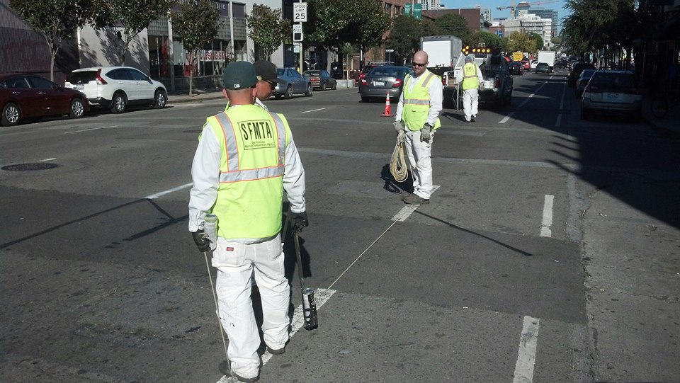 SFMTA Crews Installing Buffered Bike Lane on Folsom Street