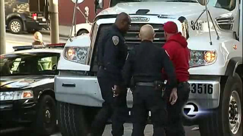 KTVU footage also shows the truck stopped with its rear encroaching on the crosswalk, indicating that the trucker could have been blocking it when the woman attempted to cross.
