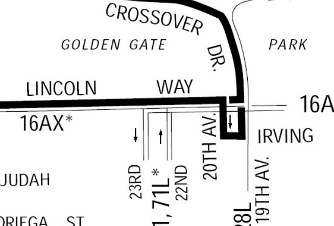 Ride the 29 northbound today, and you’ll experience how frustrating it can be — at Lincoln and 20th Avenue, the bus turns right, then left onto a congested block of Irving Street, then left again on to 19th, then it makes a stop at Lincoln before heading into the park, where 19th becomes Crossover Drive. The whole thing takes anywhere from three to seven minutes, according to the SFMTA.