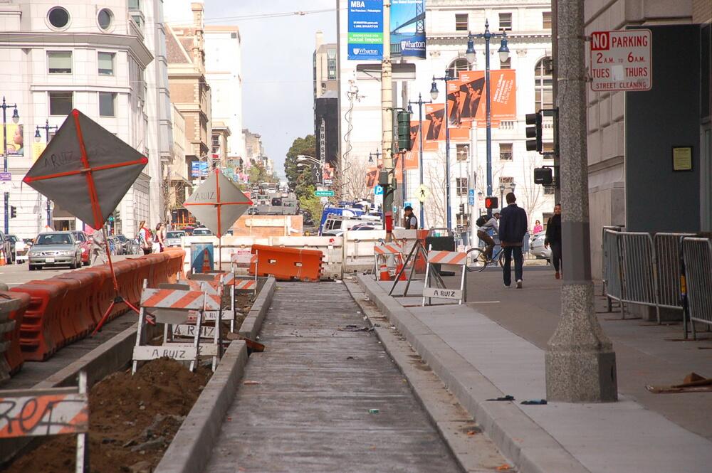 Exciting news on the protected bike lane front. The contra-flow protected bike lane on the south end of Polk Street is taking shape. By Bike to Work Day on May 8, the project is expected to provide a direct bike connection from Market Street to City Hall.