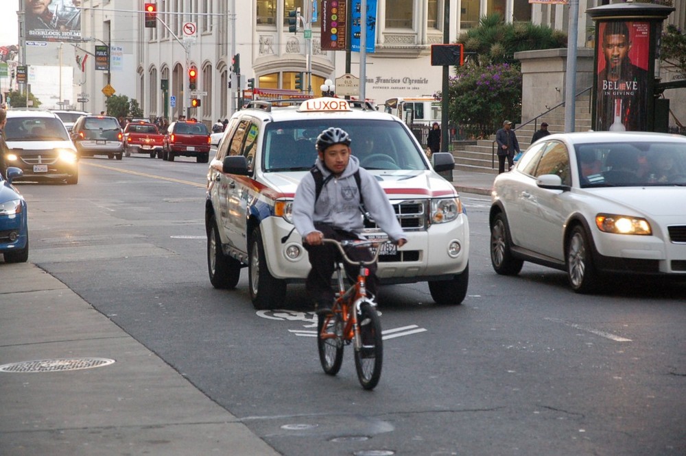 Fifth is badly in need of protected bike lanes. Currently, people biking on the street must mix it up with motor vehicles, with only sharrows painted on the broken asphalt. Fifth is a key connector for commuters headed to and from Caltrain and other destinations in SoMa. Neighboring Fourth and Sixth Streets carry even heavier, faster freeway-bound motor traffic (Fourth is a five-lane, one-way street).