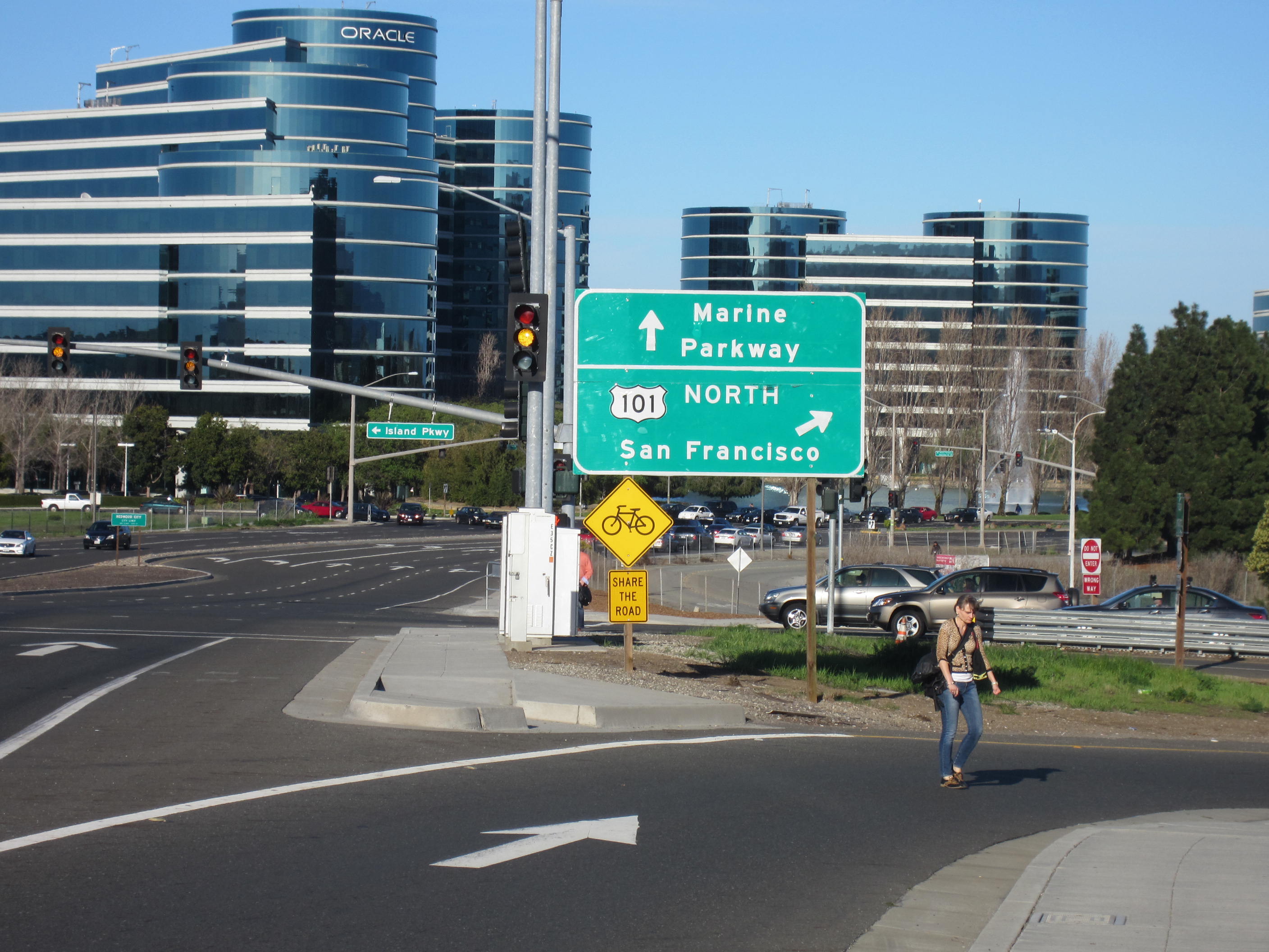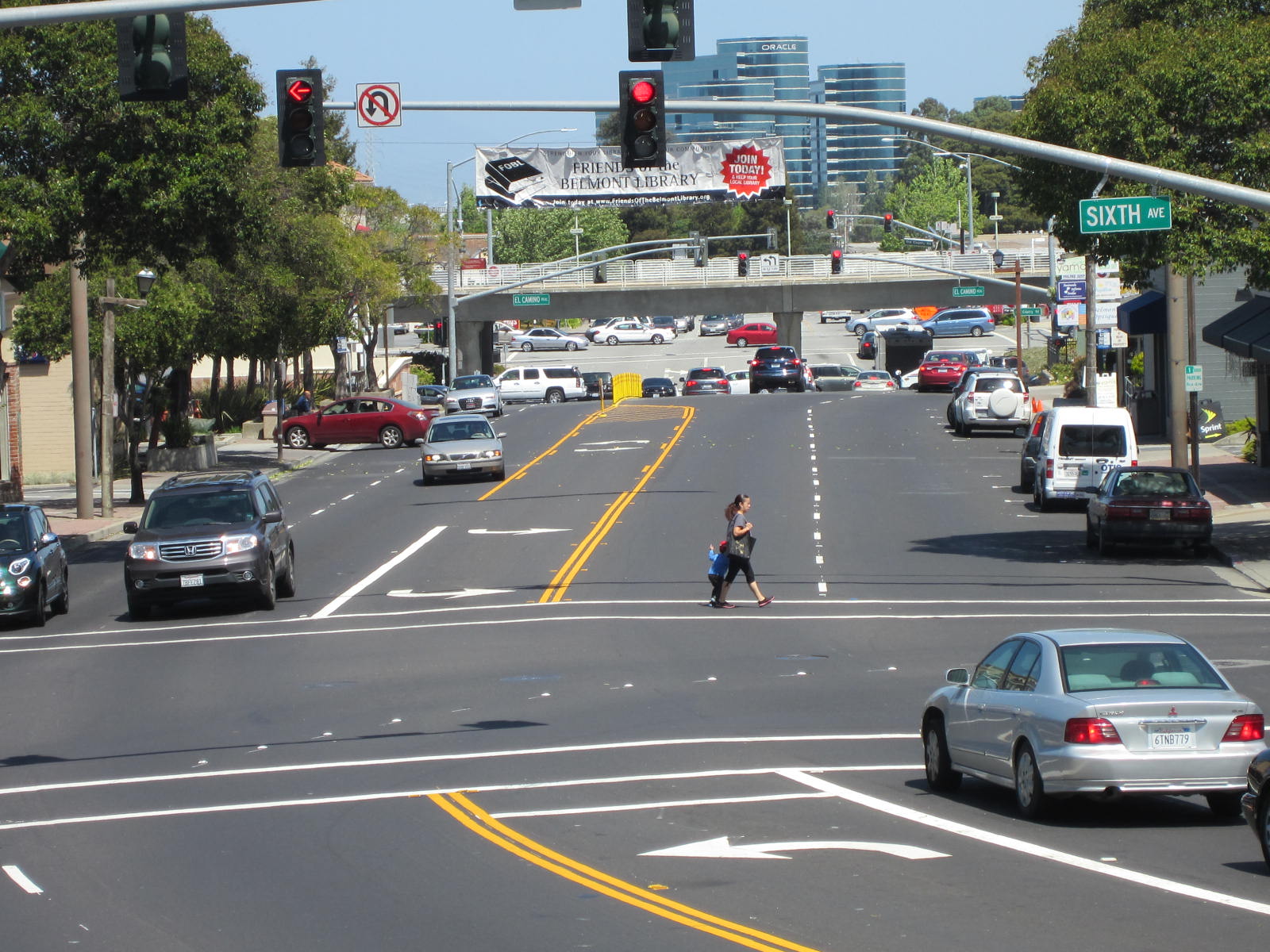 There are also no improvements recommended to make crossing Highway 101 safer for people walking. Many commuters use Ralston Avenue to walk between the Belmont Caltrain Station and office parks in Redwood Shores, since using the bike/ped bridge that spans the highway north of the street is a half-mile detour, a delay of ten minutes at an average walking pace.