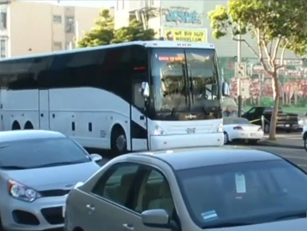 The SF Chronicle published its take on the SFMTA’s proposed network of permitted stops for private shuttles. These proposed stops would re-purpose 0.01 percent of the city’s on-street parking supply as white zones. According to the Chronicle, that equates to Google buses “devouring parking,” as its headline puts it.