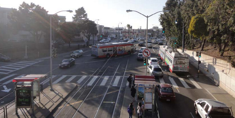 Thus far, no major changes have been proposed on Ocean. Most of the street has narrow sidewalks, no bike lanes, and heavy car traffic turning from 280 -- making the street dangerous to cross and snarling Muni. A separate plan is in the works to remove and re-configure those ramps years down the road, but a redesign of Ocean could present the opportunity to free up room for walking, biking, and transit.