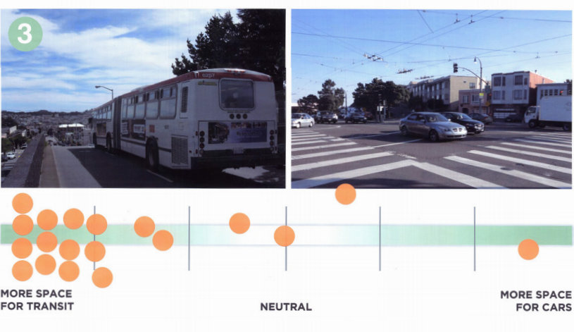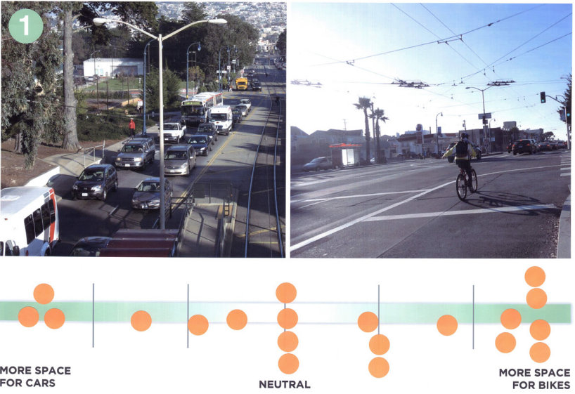 That survey will inform the long-term plan for Ocean's eastern section, between Phelan and San Jose Avenues (at Balboa Park). While planners said it was clear that those who weighed in favored space for pedestrians and transit over cars, respondents only slightly favored space for bikes over cars.