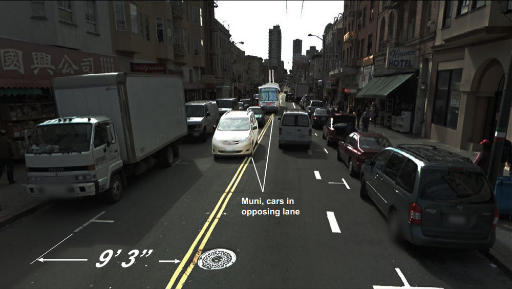 A similar treatment is planned for two blocks of Stockton, between Columbus and Broadway. There, 16 parking spaces would be removed to widen lanes from roughly 8.5 feet to 10.5 feet, giving buses more room to maneuver.