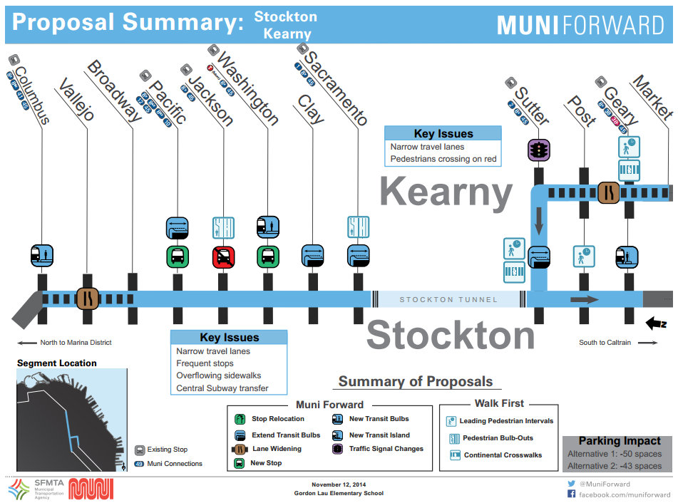 Aside from stop consolidation, the only point of contention for some seems to be proposals to remove car parking for transit upgrades. Chinatown residents and merchants don’t seem to depend much on car storage, and they’ve been happy to ban car parking on Stockton Street to boost business during the busy Lunar New Year shopping season.