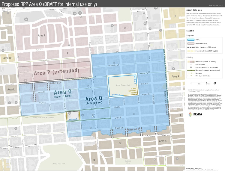 After months of planning, the SFMTA gave initial approval on Friday to a new Residential Parking Permit (RPP) zone known as Area Q in the Alamo Square and North of Pandhandle neighborhoods. If the zone is enacted, parking permit holders would pay a $110 annual fee (about 30 cents per day) to get an exemption from two-hour parking limits instituted during daytime hours.