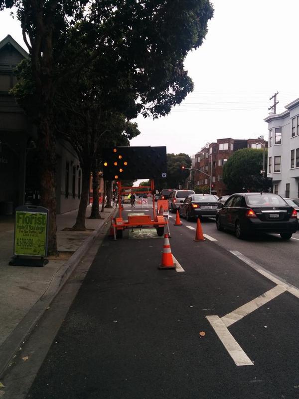 Without the traffic islands, the bike lanes remain unprotected, keeping riders exposed to three lanes of heavy motor traffic and discouraging risk-averse people from biking. Drivers often park in the lanes, though Supervisor London Breed has convinced the tow truck company on Fell to reduce that practice.