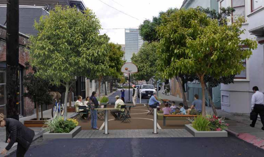 The SF Planning Department released a design guide this week for “living alleys” [PDF], providing a template to transform SF’s narrow, low-traffic streets into places to gather and play.