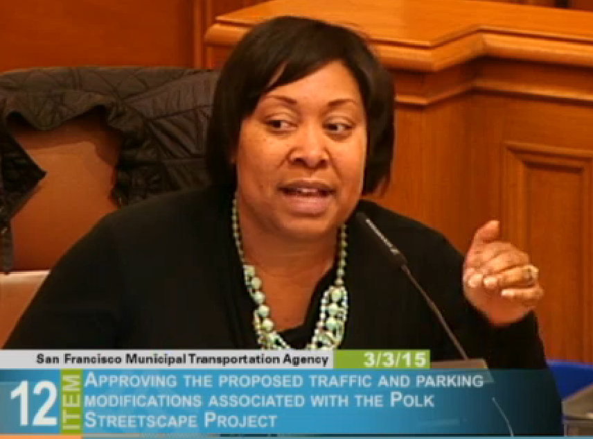 None of that seemed to sink in with SFMTA Board member Gwyneth Borden, who argued for the “compromise” on Polk by citing the 1986 General Plan‘s first priority: “That existing neighborhood-serving retail uses be preserved and enhanced.” According to Borden’s interpretation, that means keeping curbs lined with car parking, not bike lanes.