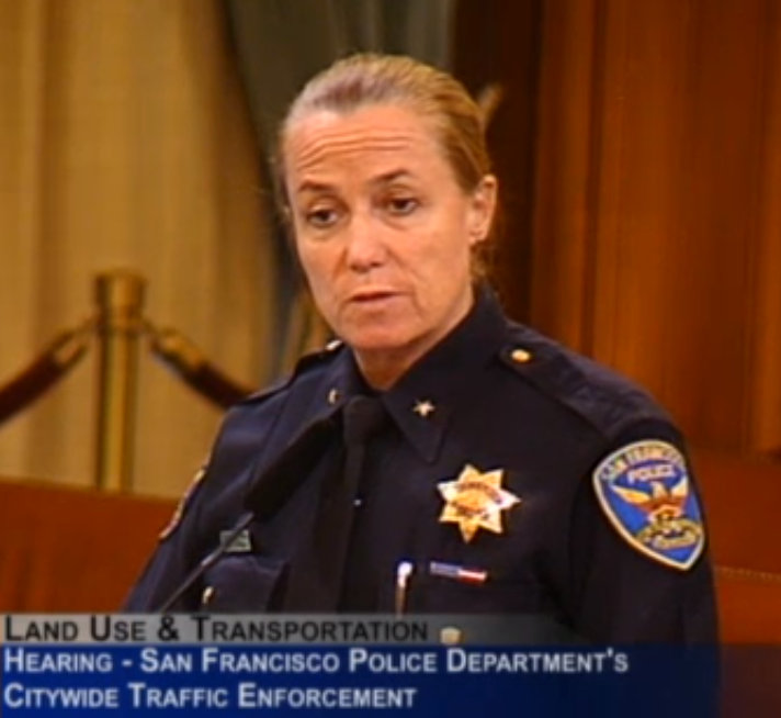 At a supervisors committee hearing yesterday, SFPD Traffic Commander Ann Mannix, who took her post in January, expressed no intention of meeting the department’s official goal of issuing 50 percent of traffic citations to the top five most dangerous violations, which are all driver violations.