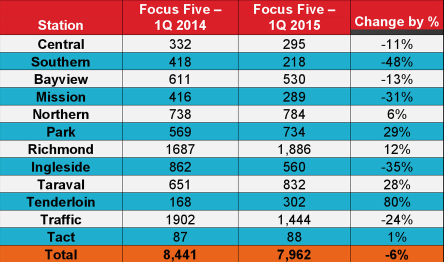 Richmond Station continues to be the only station to meet the 50 percent goal. Mannix asserts that SFPD can’t meet its self-imposed Focus on the Five goal because officers can’t be choosy about what they enforce, and that police staffing is occupied with non-traffic duties.