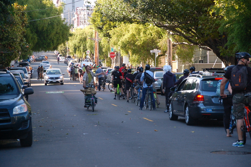 Cheryl Brinkman, a member of the SFMTA Board of Directors, was among the roster of city officials, bike advocates, and everyday people who turned out to take part in the exceptionally legal event.