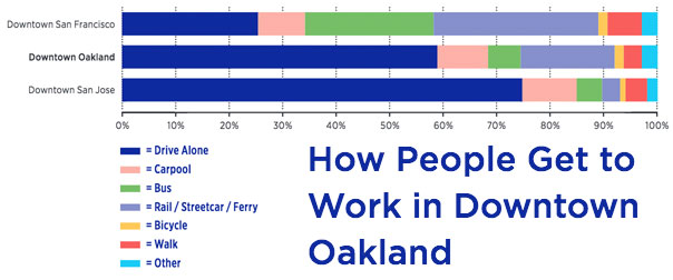 Downtown Oakland is one of the most transit-accessible places in the region. Yet only 24 percent of downtown employees take transit to and from work. Over time, downtown should strive to increase the share of commuters who take transit, walk or bike to more than 50 percent. To achieve this, we recommend the city and transit operators redesign the local bus system, build out the East Bay bus and bus rapid transit network, create a world-class biking network, and close or remove some freeway off-ramps to regain land in downtown. It will also be crucial for the city’s new Department of Transportation to create a capital plan to prioritize and identify funding for the many infrastructure projects currently under consideration downtown.