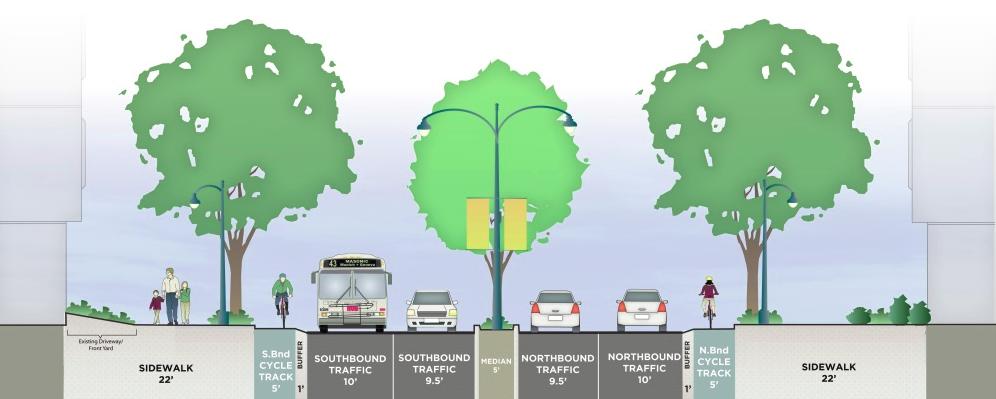 To add more parking, the city is considering blocks of nearby Turk, Central, Lyon and other streets for 90-degree, angled parking. An audience member brought up that she doesn’t like angled parking, because it’s hard to see oncoming cyclists. At that point, I chimed in. It occurred to me that if they’re re-configuring parking, why not add a cycle path between the curb and the parked cars, to created a simple protected bike lane? It would require blocks to make sure cars don’t pull up too far, but that’s cheap. Not exactly a ground breaking idea, so I thought.