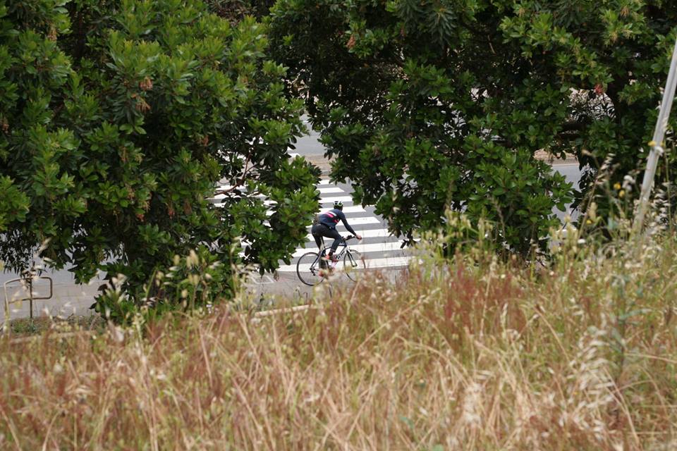 He recommended putting in flashing lights and signals to make cars stop more reliably. Another sore spot is the sharp grade to get down and back up from the crossing at Brotherhood Way, as seen in the photo above. The hill is a bit challenging to regular cyclists, and as Professor Henderson pointed out, if there are ever going to be bike share stations at Daly City BART and the university, they need to eliminate that grade.